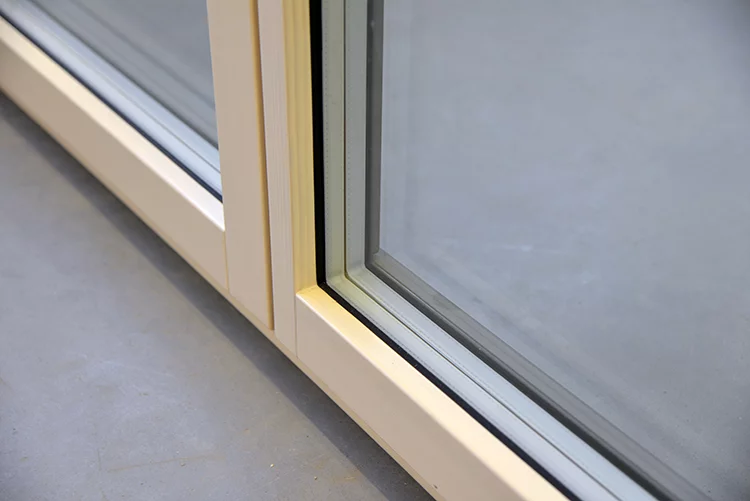 Modernt trä-aluminiumsystem med dold fönsterbåge.